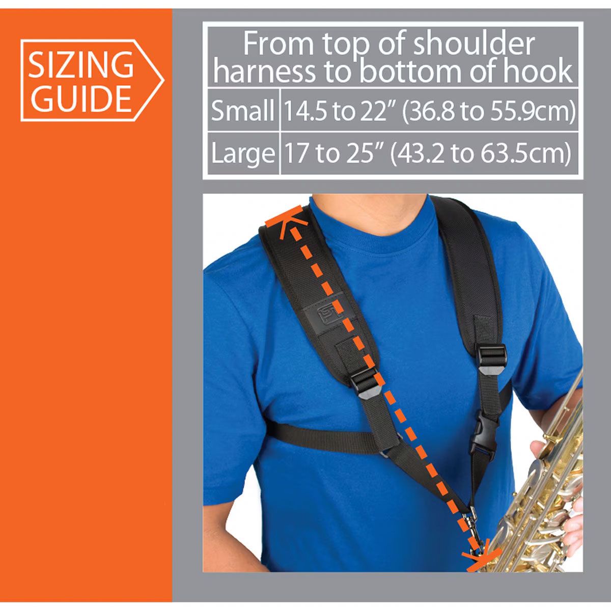 Het gewatteerde Deluxe saxofoon harnas van Protec is ideaal voor de meeste alt, tenor en bariton saxofoons. Het harnas is gemaakt van 5 cm breed ballistisch nylon en heeft een ergonomisch gevormd ontwerp. De banden zijn gevoerd met een ademende mesh voering en het harnas is eenvoudig en snel op de juiste maat in te stellen. Voorzien van een duurzame metalen musketonhaak met rubberen coating.